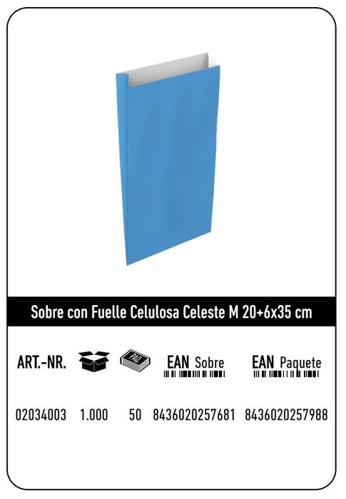 Descubre la forma más elegante de presentar tus documentos y trabajos con este versátil sobre de celulosa. Con su encantador color celeste y su práctico diseño con fuelle, es la solución perfecta para mantener tus documentos organizados y protegidos en todo momento.