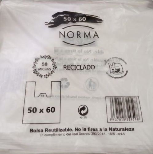 Estas bolsas, fabricadas con un impresionante 70% de material reciclado, no solo conllevan un compromiso con el medio ambiente, sino que además ofrecen una gran resistencia y capacidad. Con unas medidas de 50x60 cm, cada bolsa es perfecta para llevar tus compras, organizar tus materiales en la oficina o almacenar artículos en casa. Su color blanco y diseño tipo camiseta facilitan un uso práctico y cómodo.