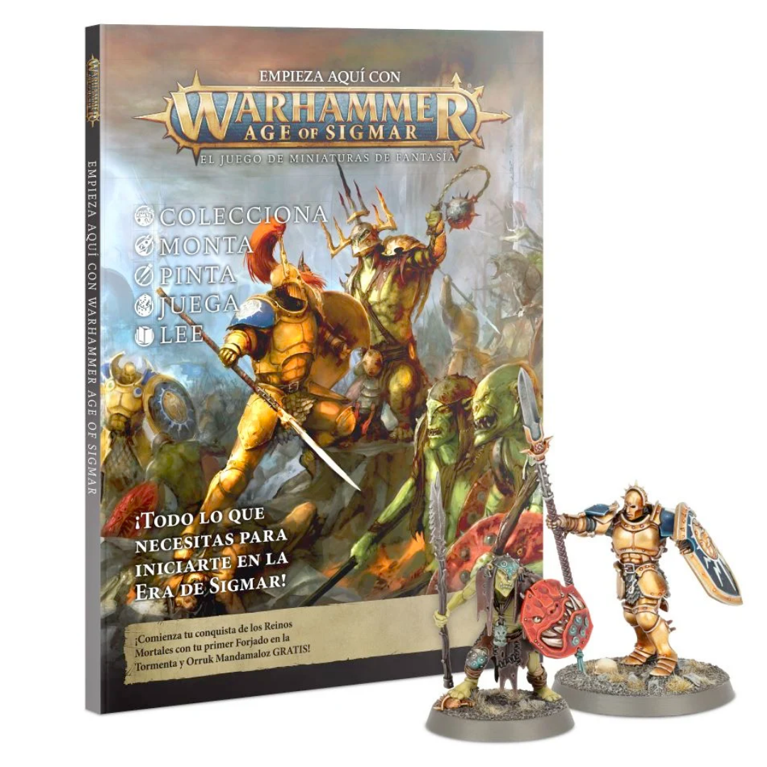 Warhammer Age of Sigmar es un juego de mesa de estrategia bélica de fantasía. Ya comandes a los valientes Forjados en la Tormenta, a los malvados Orruks Mandamaloz, o a una de las muchas otras facciones que luchan por dominar de los Reinos Mortales, tus batallas en los reinos prometen estar llenas de acción.