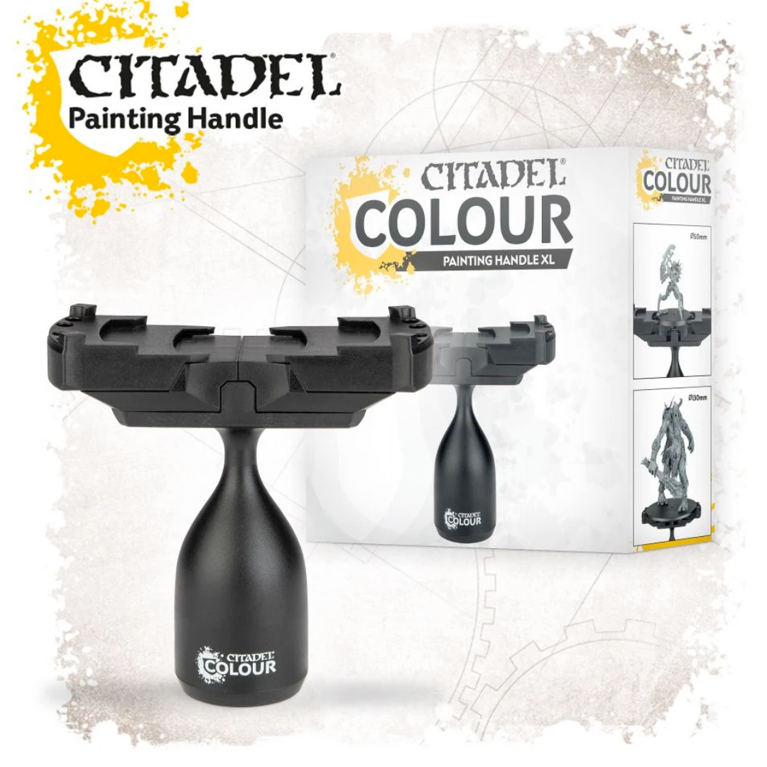 El Mango de pintura XL de Citadel Colour cuenta con una base equilibrada y ergonómica que se adapta cómodamente a la palma de la mano, lo que permite pintar durante más tiempo con menos esfuerzo. La enorme pinza con muelle sujeta de forma segura peanas que van desde los 50 mm hasta las peanas ovaladas de 170 mm, ¡la peana estándar más grande que encontrarás en la gama actual!