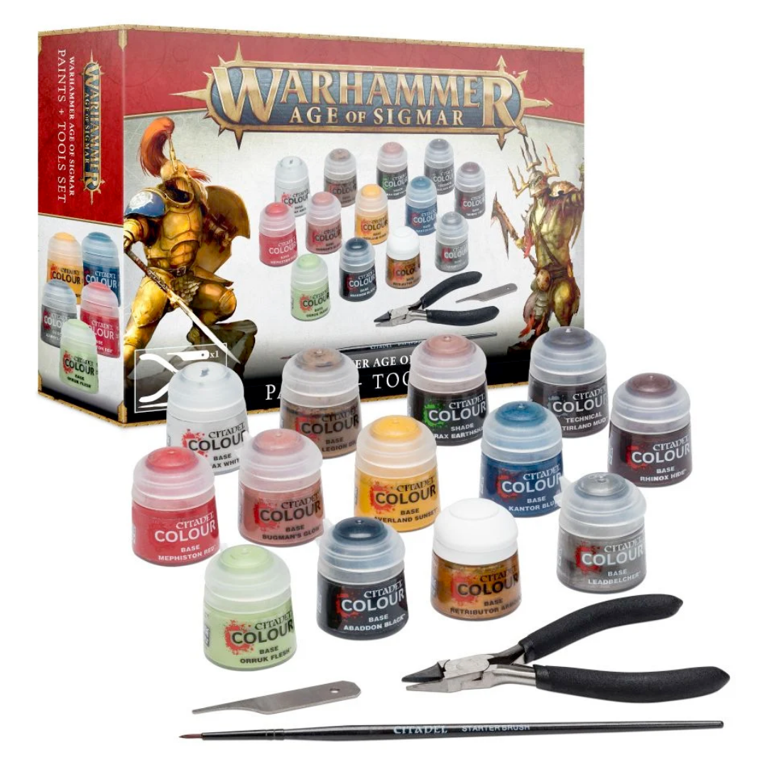 Montar y pintar miniaturas es una actividad emocionante y divertida que forma parte esencial del hobby. Con el tiempo, esta actividad se vuelve aún más gratificante. Para comenzar, necesitas algunas herramientas y pinturas básicas, y esta caja contiene los elementos fundamentales que serán la base de tu conjunto de herramientas para el hobby.